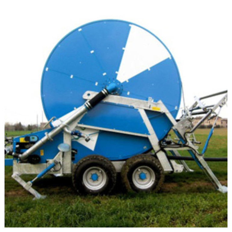 - Cărucior de ploaie galvanizat montat pe roți variabile pentru așezarea furtunului pe șina roții tractorului cu picior stabilizator automat pentru cărucior